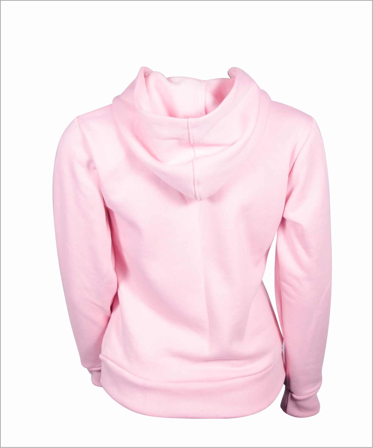 - costas da blusa moletom peluciado feminino com capuz e ziper